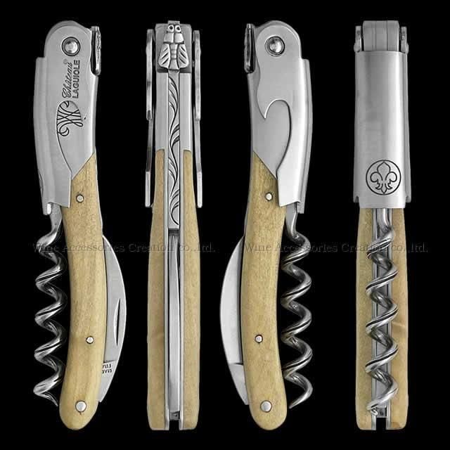 ちなみにチューリップと聞くと、可愛らしい球根の花を思い浮かべますが、チューリップツリーはアメリカ東部の原産の大木、チューリップに似た花が咲くことからこの名前になったそうです。ヴェルサイユ庭園の木を採用した証明として、フック部分にはフランス王国の花であるLYS(ゆり)の紋章が刻印され、さらに王国の象徴である色(ロイヤルブルー)の専用革ケースが付属されています。希少な歴史ある木をハンドルに採用してますので、木が無くなり次第生産終了となります。