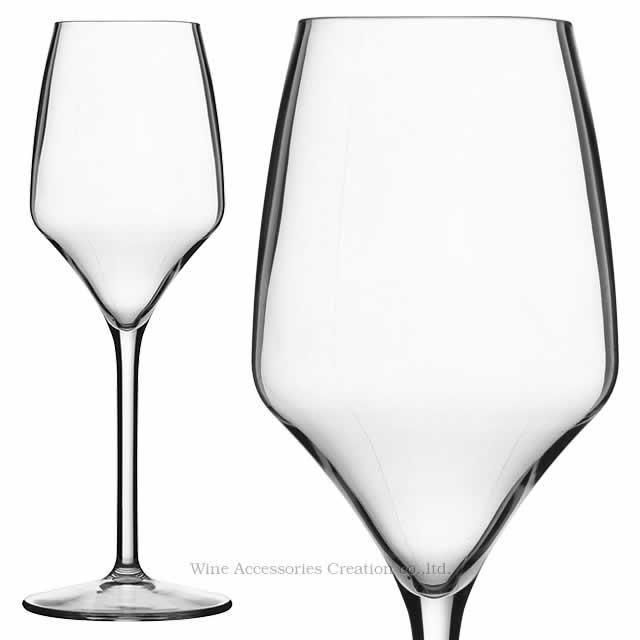 ガラスのような透明感がありながら、ペットボトルのような柔軟性があるワイングラスです。ステム(脚)が長く、 高級感を漂わせるシルエットが魅力で、シャルドネ種の白ワインやシャンパーニュ、スパークリングワインに最適です。一番膨らんだ部分で約50mlが注げます。通常のガラス製と比べ軽量なので、ワインイベントやワイン祭りなどの多人数でのテイスティング時にも重宝します。倒しても、落としても割れないので、お年寄りやお子さまも安心してご使用いただけます。繰り返しご使用可能なので、大人数のパーティ、お花見やバーベキューなどのアウトドア、旅行、防災グッズ用など、さまざまなシーンでお役に立つシリーズです。ご注意:商品の特性