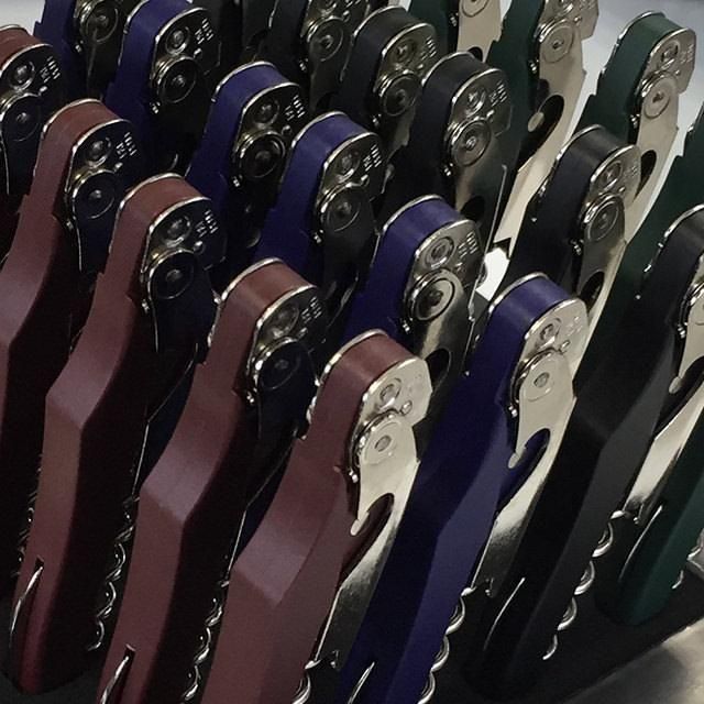コルクを引き抜く力をダブル軸システム(フック付け根の支点を移す)により軽減してくれる、イタリア刃物の街「Maniago マニアーゴ」製ソムリエナイフ「シンクロ」です。フックをダブル軸にすることで、フックレバーの長さがコルクを抜くまでの間に徐々に長くなり、長いコルクも1回で抜くことが出来ます。またコルクを垂直に引き上げるので、コルクの割れ(破損)率が激減致します。